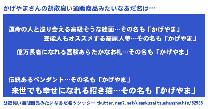| 2回繰り返すあだ名 | 『かげかげ』『かかげげ』『げしげし』 |