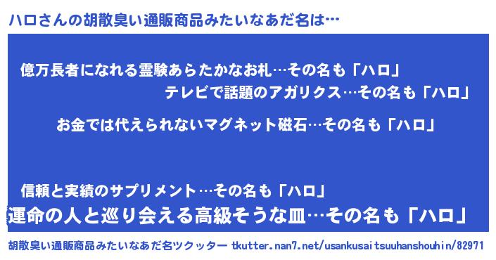 | ヒーロー風カッコイイあだ名 | 『慈愛の使者ハロ』『スーパーハロ』 |