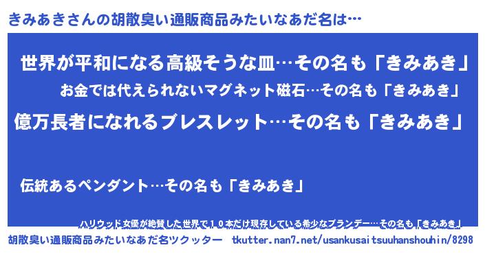 きみあきさんの胡散臭い通販商品みたいなあだ名をツクッター!