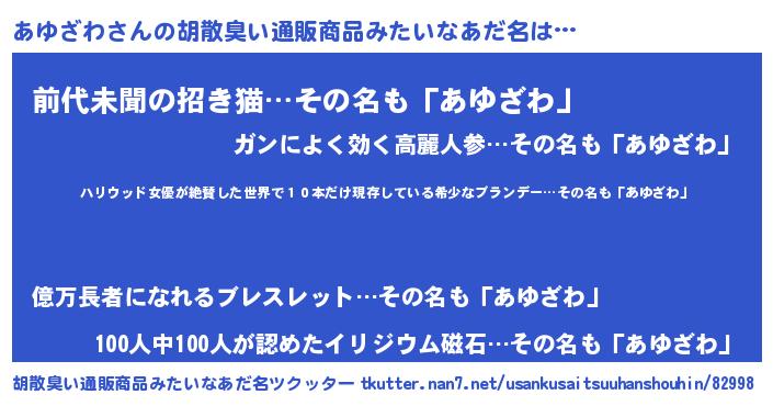 | 意味不明あだ名 | 『住所不定無職あゆざわ(93歳)』 |