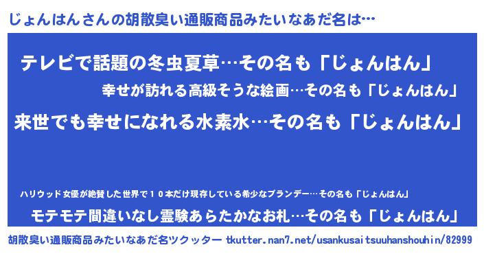 | 意味不明あだ名 | 『永久保存じょんはん』『自称じょんはん』 |