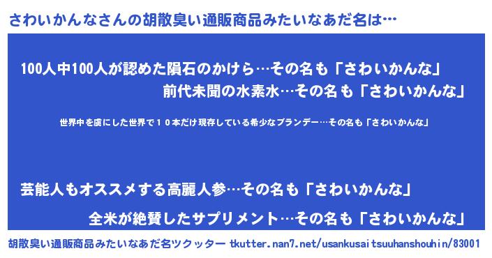| 意味不明あだ名 | 『住所不定無職さわいかんな(71歳)』 |