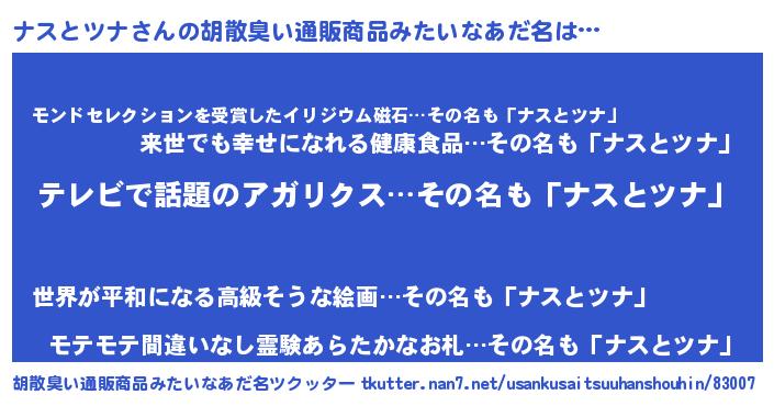 | ヘコむあだ名 | 『ナスもー』『ナスとツナ(爆)』 |