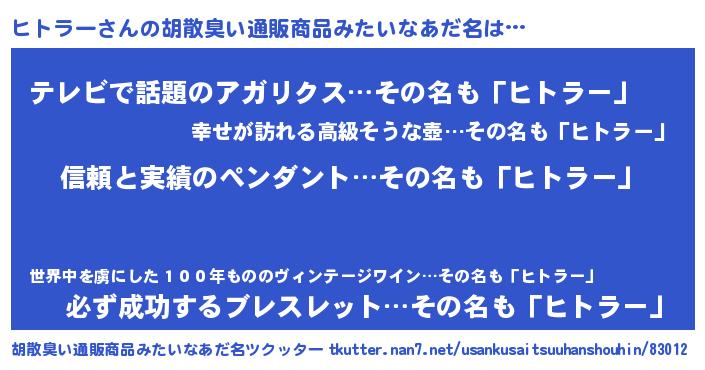 | 意味不明あだ名 | 『とにかく怪しいヒトラー』 |