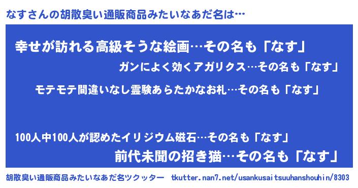 | ヘコむあだ名 | 『なすもー』『つくし』『なす(笑)』 |
