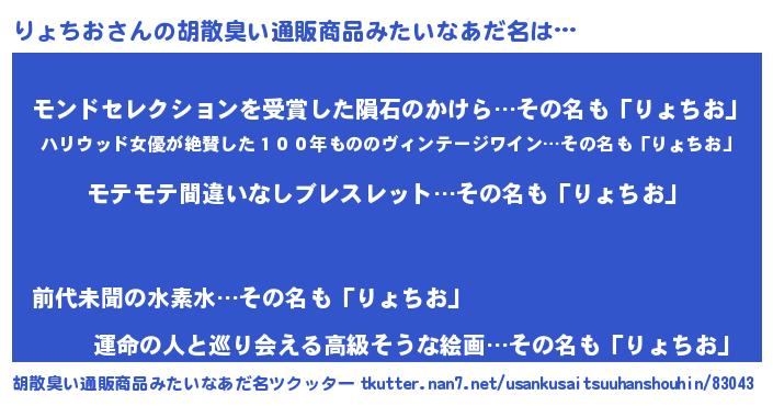 | 意味不明あだ名 | 『ペロリンりょちお』 |