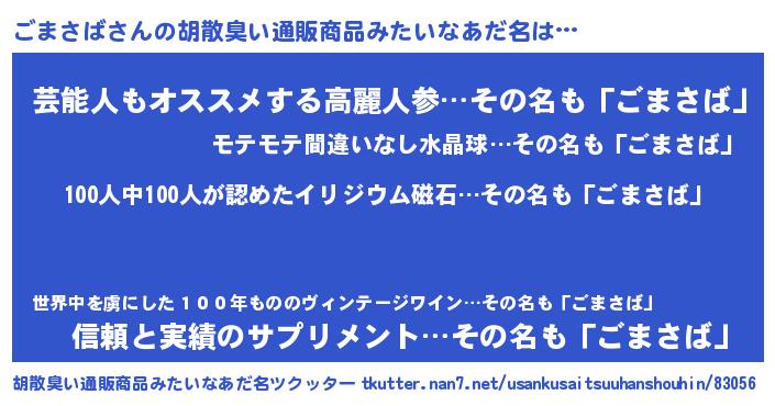 | ヒーロー風カッコイイあだ名 | 『正義の使者ごまさば』『暗黒騎士ゴマ』 |