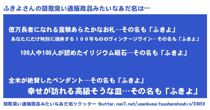 | ヒーロー風カッコイイあだ名 | 『正義の使者ふきよ』『スーパーフキヨ』 |