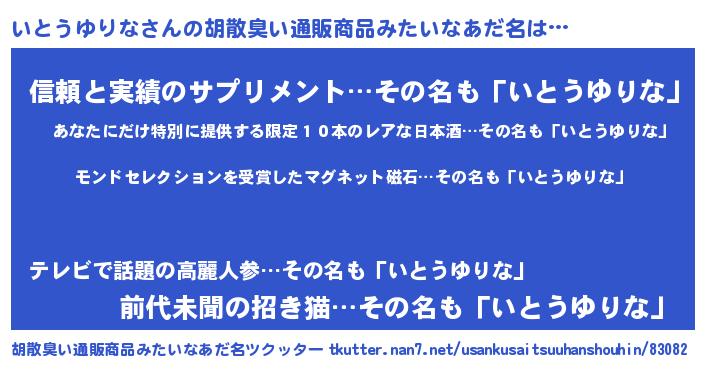 | 意味不明あだ名 | 『眠気覚ましガムいとうゆりな味』 |