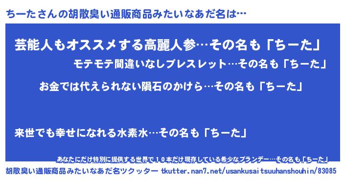 ちーたさんの胡散臭い通販商品みたいなあだ名をツクッター!