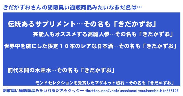 | 意味不明あだ名 | 『住所不定無職きだかずお(56歳)』 |