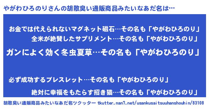 | ヘコむあだ名 | 『やがわひろのり(震え声)』『やがを』 |