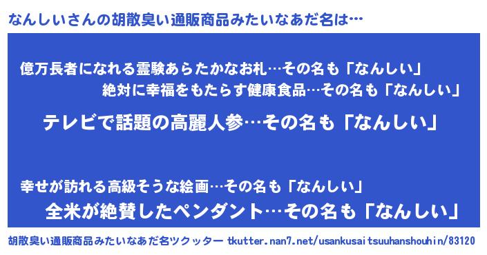 | 意味不明あだ名 | 『自称なんしい』『ペロリンなんしい』 |