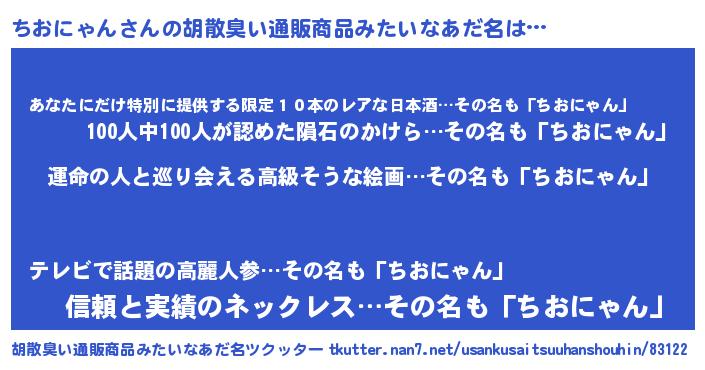 | 意味不明あだ名 | 『ちおにゃんフォーエバー』 |