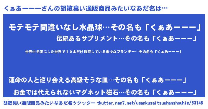 | ヘコむあだ名 | 『くぁっふぃ~』『くぁお』 |
