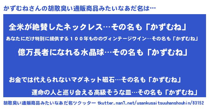 | 恥ずかしいあだ名 | 『プリティーかずむね』『カズリンリン』 |