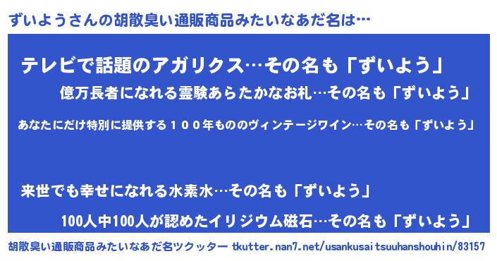| 意味不明あだ名 | 『住所不定無職ずいよう(5歳)』 |