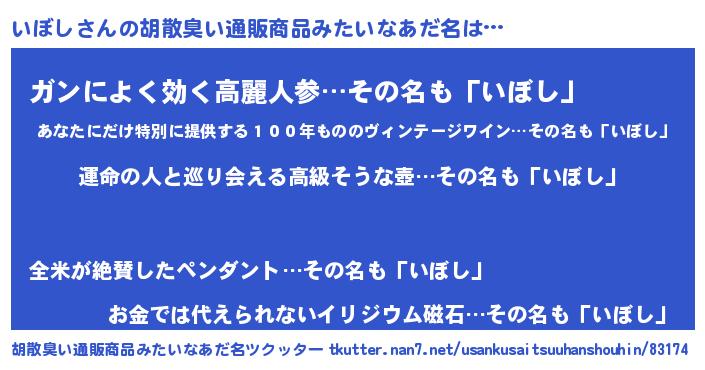 | 意味不明あだ名 | 『いぼしフォーエバー』『自称いぼし』 |