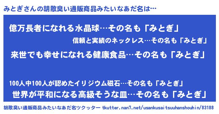 | 意味不明あだ名 | 『永久保存みとぎ』『ペロリンみとぎ』 |