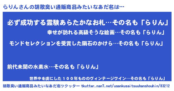 | 意味不明あだ名 | 『眠気覚ましガムらりん味』 |