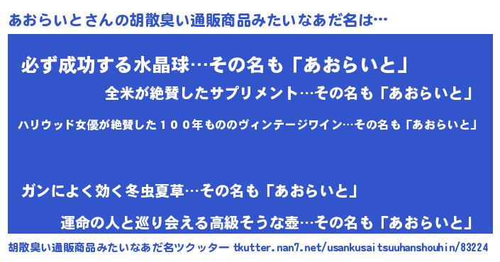 | 料理風あだ名 | 『あおらいとのカルパッチョ風』 |