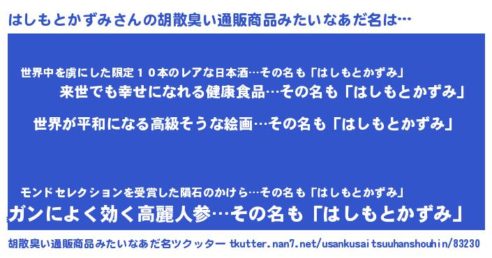 | 肩書あだ名 | 『はしもとかずみ総理大臣』 |