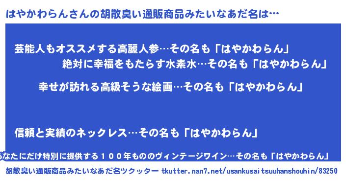 | 意味不明あだ名 | 『はやかわらんフォーエバー』 |