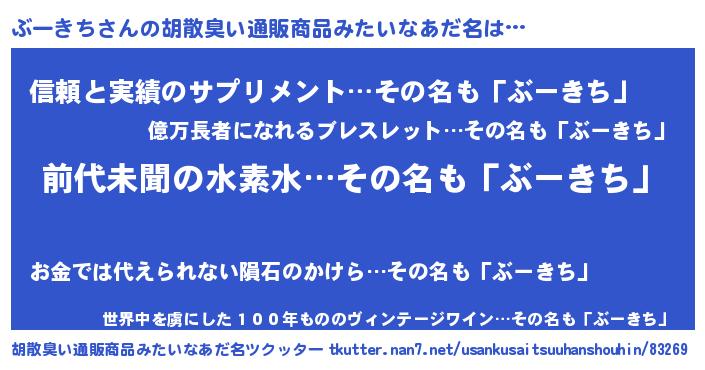 | 意味不明あだ名 | 『永久保存ぶーきち』『ペロリンぶーきち』 |