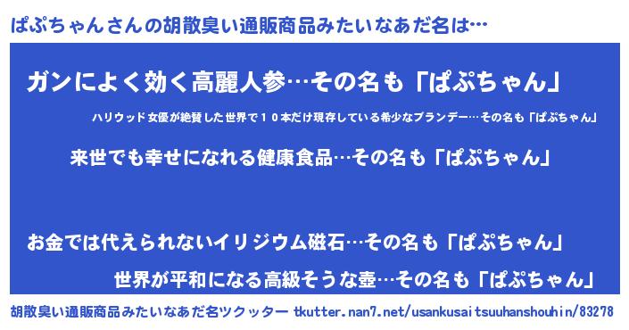 | ヘコむあだ名 | 『ぱぷちゃん(爆)』『牛乳』『ぱぷお』 |