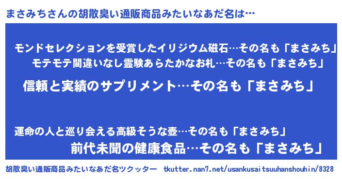 | ヘコむあだ名 | 『まさお』『まさみち(爆)』『豆乳』 |