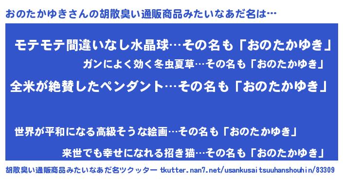 | ヘコむあだ名 | 『おのぷりん』『おのふぇ~』『牛乳』 |