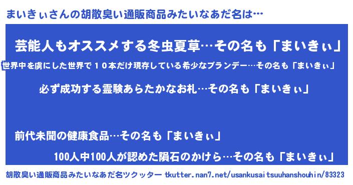 | ヘコむあだ名 | 『まいもー』『まいきぃ(震え声)』 |
