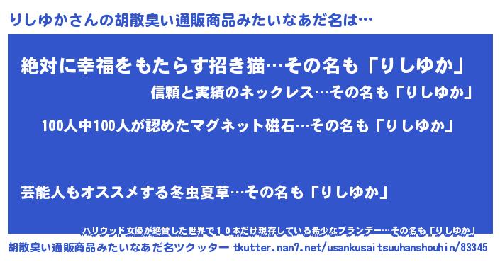 | ヒーロー風カッコイイあだ名 | 『正義の使者りしゆか』『ネオリシユカ』 |