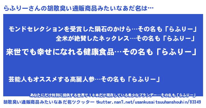 | 恥ずかしいあだ名 | 『らふちん』『ボンバーヘッドらふ』 |