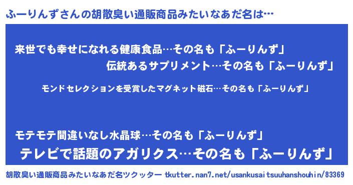 | ヒーロー風カッコイイあだ名 | 『慈愛の使者ふーりんず』『銀牙騎士フー』 |