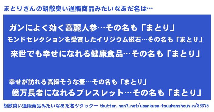 | ヘコむあだ名 | 『まとり(苦笑)』『まとにー』『牛乳』 |