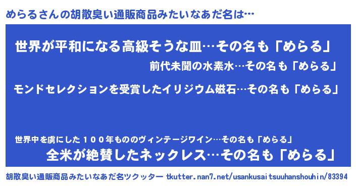 | ヘコむあだ名 | 『酢こんぶ』『めらぷりん』 |