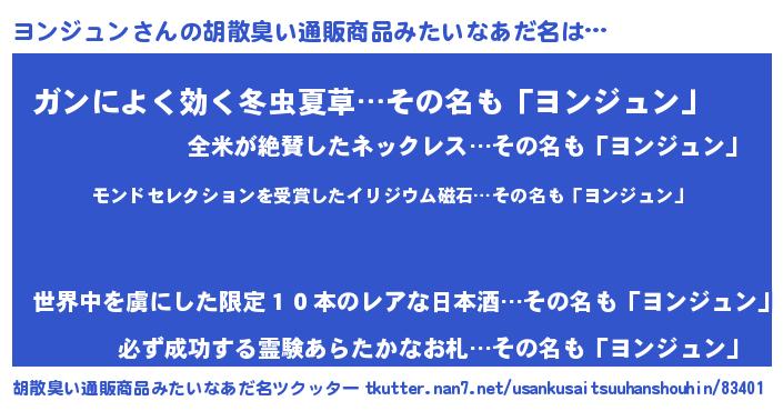 | 意味不明あだ名 | 『眠気覚ましガムヨンジュン味』 |