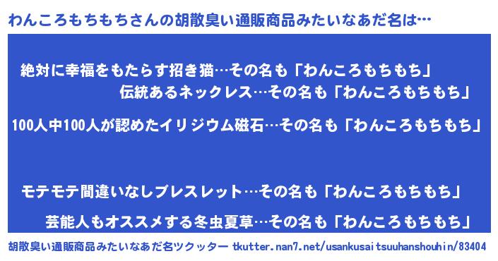 | ヘコむあだ名 | 『わんころもちもち(苦笑)』『わんお』 |