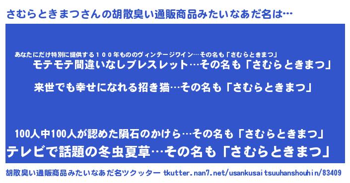 | 意味不明あだ名 | 『永久保存さむらときまつ』 |