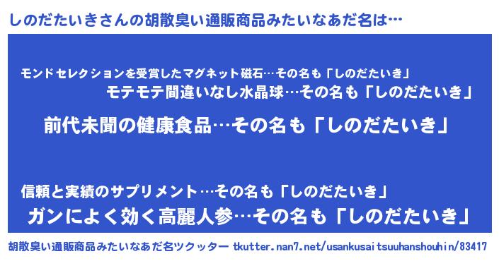 | 意味不明あだ名 | 『永久保存しのだたいき』 |