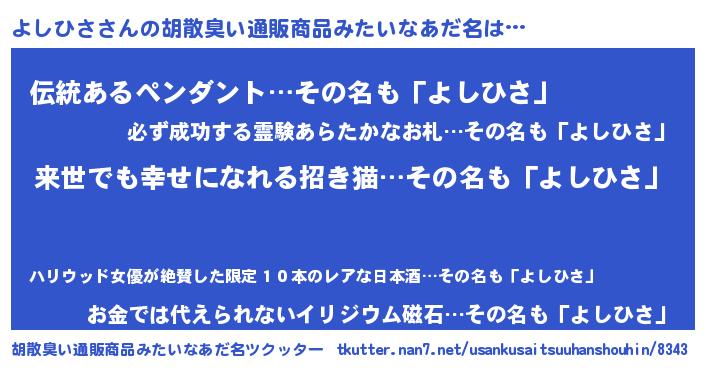| 男性向けラノベタイトル風あだ名 | 『よしひさという概念が存在しない退屈な世界 』 |