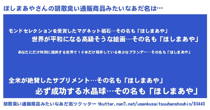 | 意味不明あだ名 | 『住所不定無職ほしまあや(79歳)』 |