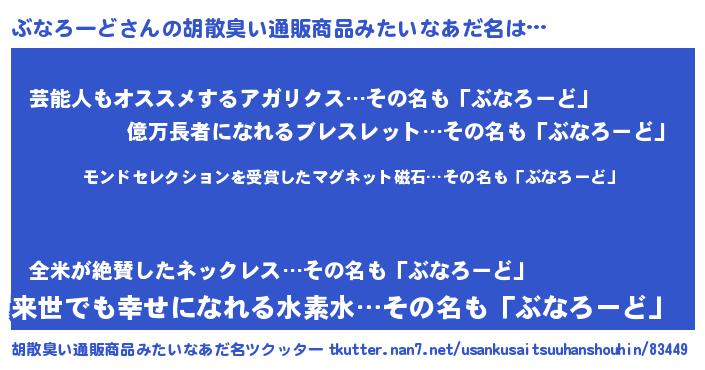 | ヘコむあだ名 | 『ぶなろーど(笑)』『ぶなもー』 |
