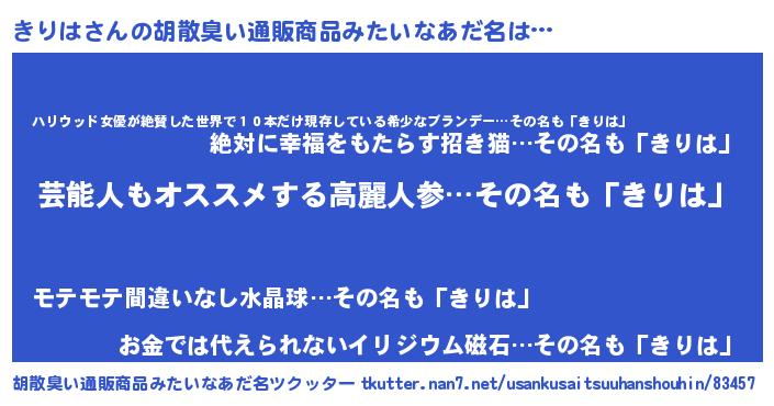 | 意味不明あだ名 | 『つくし科きりは属』『自称きりは』 |