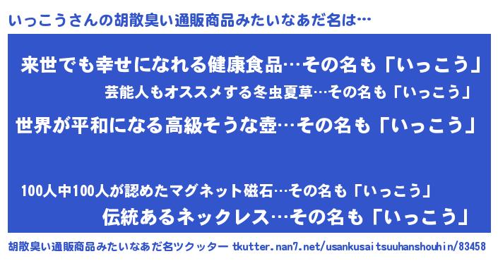 | 意味不明あだ名 | 『もやし科いっこう属』『自称いっこう』 |