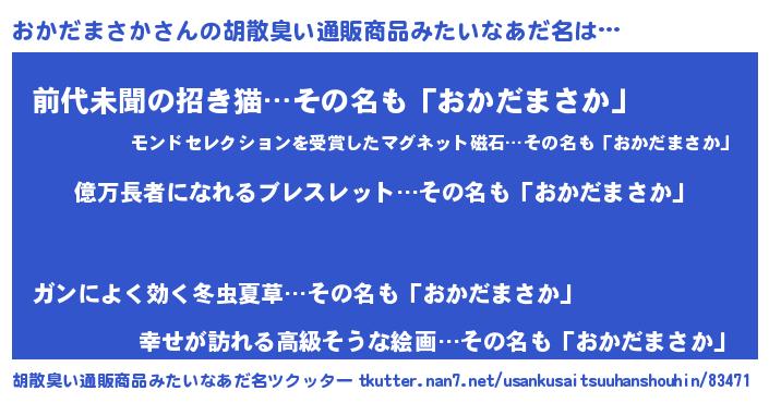 | ヘコむあだ名 | 『おかふぇ~』『おかだまさか(小並感)』 |