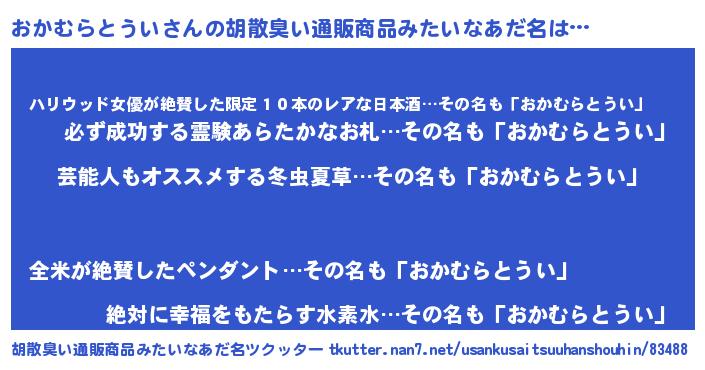 | 意味不明あだ名 | 『自称おかむらとうい』 |