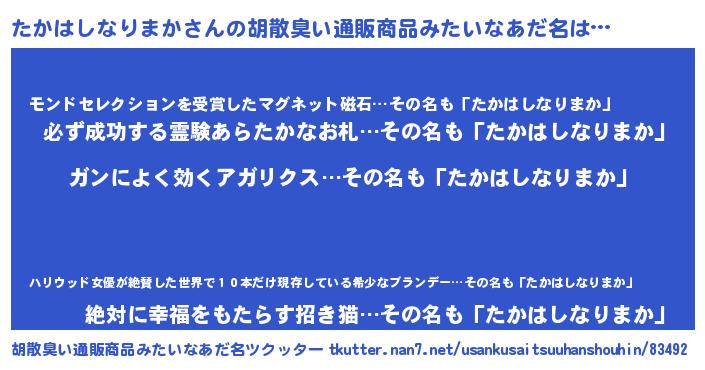 | 意味不明あだ名 | 『自称たかはしなりまか』 |