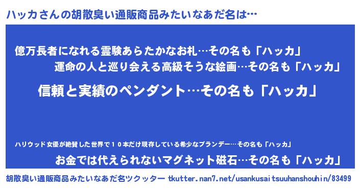 | 欧米人風あだ名 | 『トリンドルハッカ』『ウサインハッカ』 |